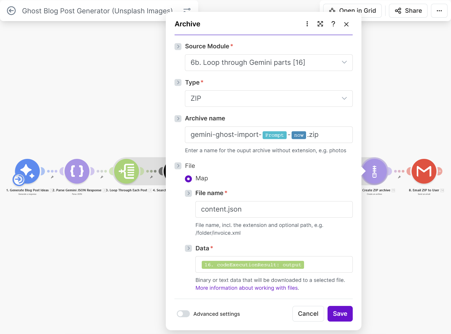 Step 2: Add the first Gemini module (generate posts)